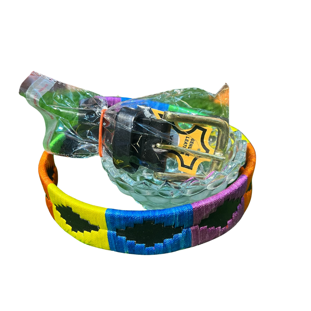 These belts provide excellent durability and functionality. They feature a sturdy metal buckle (which appears to be brass/gold-toned) that is both secure and adds a touch of classic hardware elegance. The combination of strong textile, genuine leather accents, and high-quality stitching ensures that this belt is built to last, making it a reliable and vibrant accessory for years to come.