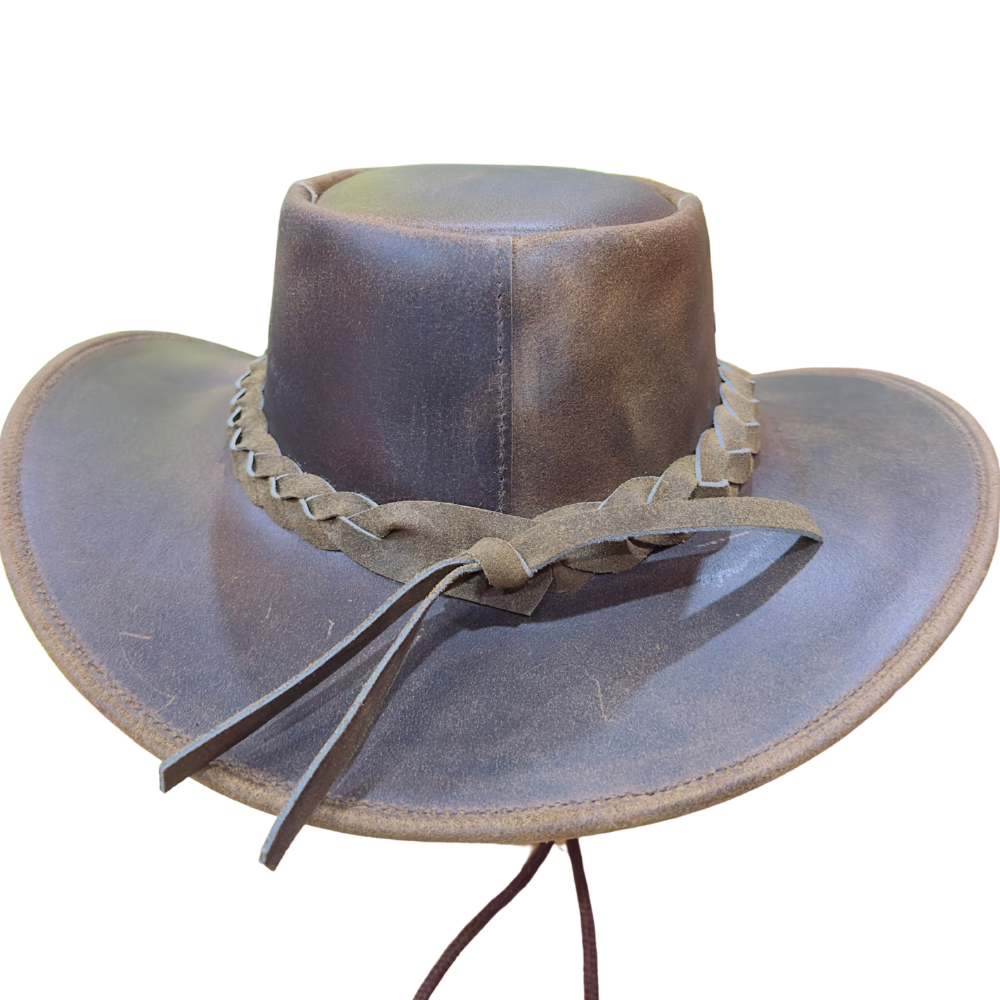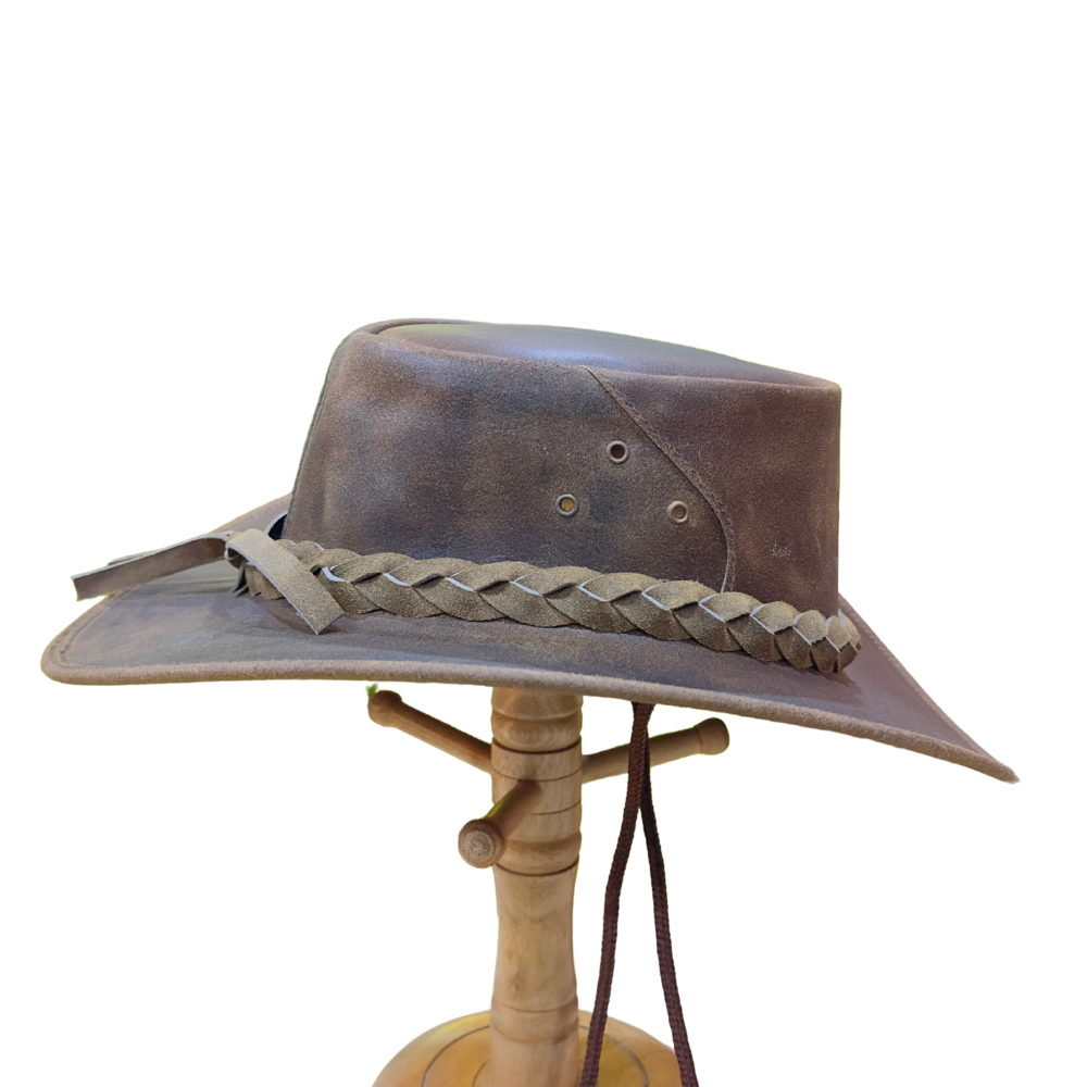 Experience the enduring quality of this traditional outback hat, expertly crafted from premium distressed leather. The material’s natural variation and rich texture offer a smooth yet rugged feel, ensuring both comfort and luxury. Each hat is meticulously hand-shaped and stitched by skilled artisans, whose dedication and attention to detail are evident in the hat’s superior finish and lasting structure.