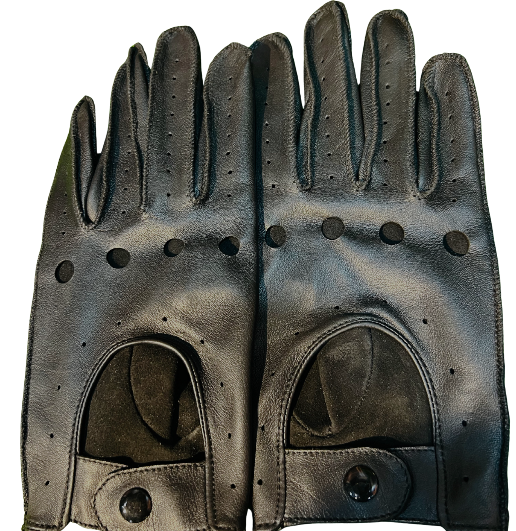 Classic Black Perforated Leather Motorist Gloves