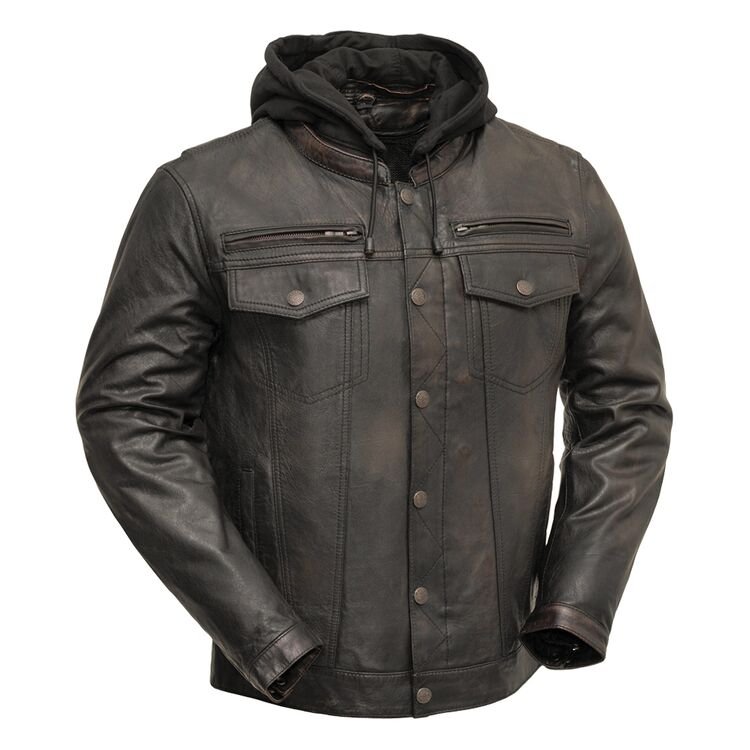 First Manufacturing Vendetta Leather Jacket with Removable Hoodie