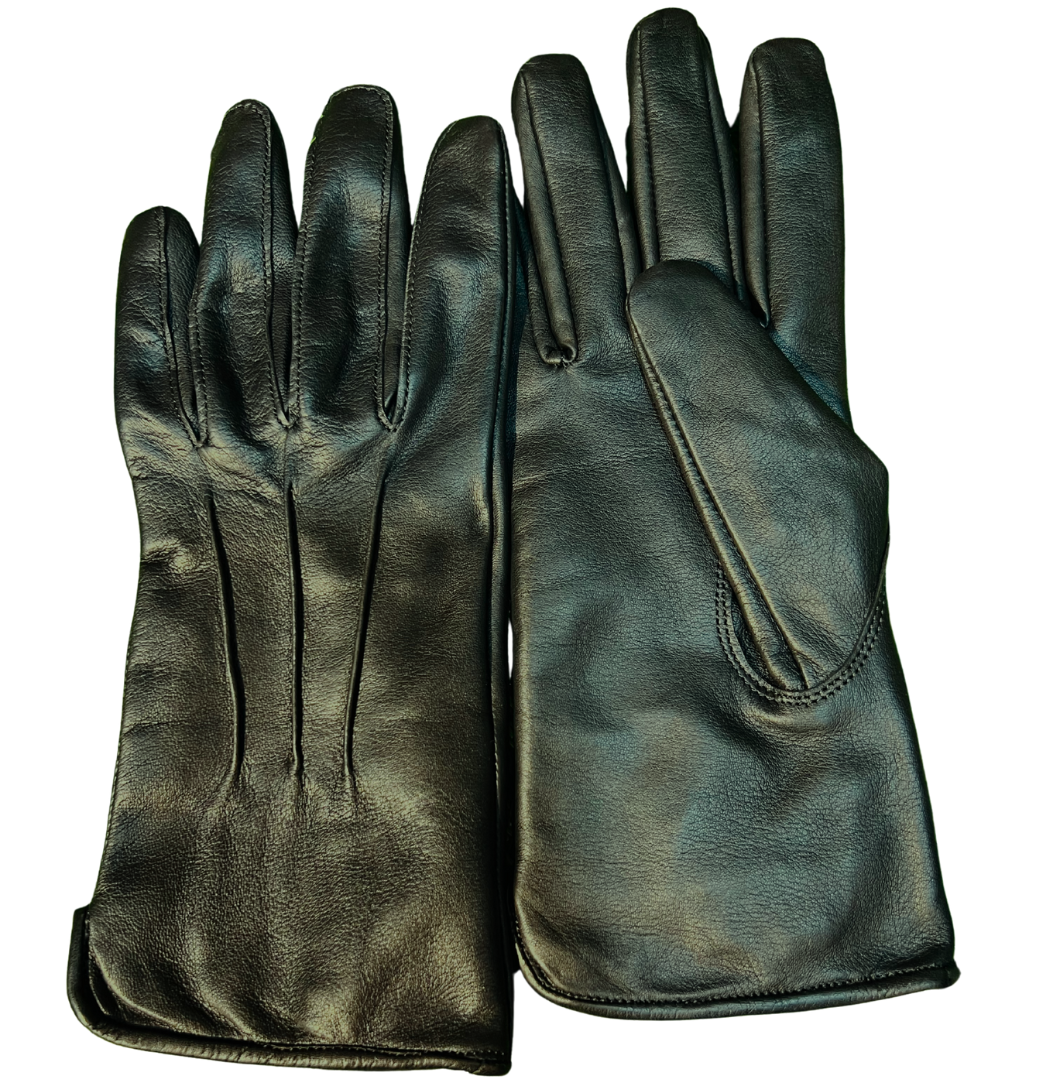 This traditional utility accessory is crafted from premium, durable black leather. The sturdy construction ensures a reliable look and feel, suitable for the motorcyclist, weightlifter, or enthusiast who requires total grip contact and ventilation. We meticulously craft this glove by skilled leather artisans who pay attention to each detail, ensuring a secure and protective fit across the palm and knuckles. From the choice of tough leather to the reinforced stitching and adjustable closure, the dedication and artistry of the craftsmen shine through in this functional leather glove.