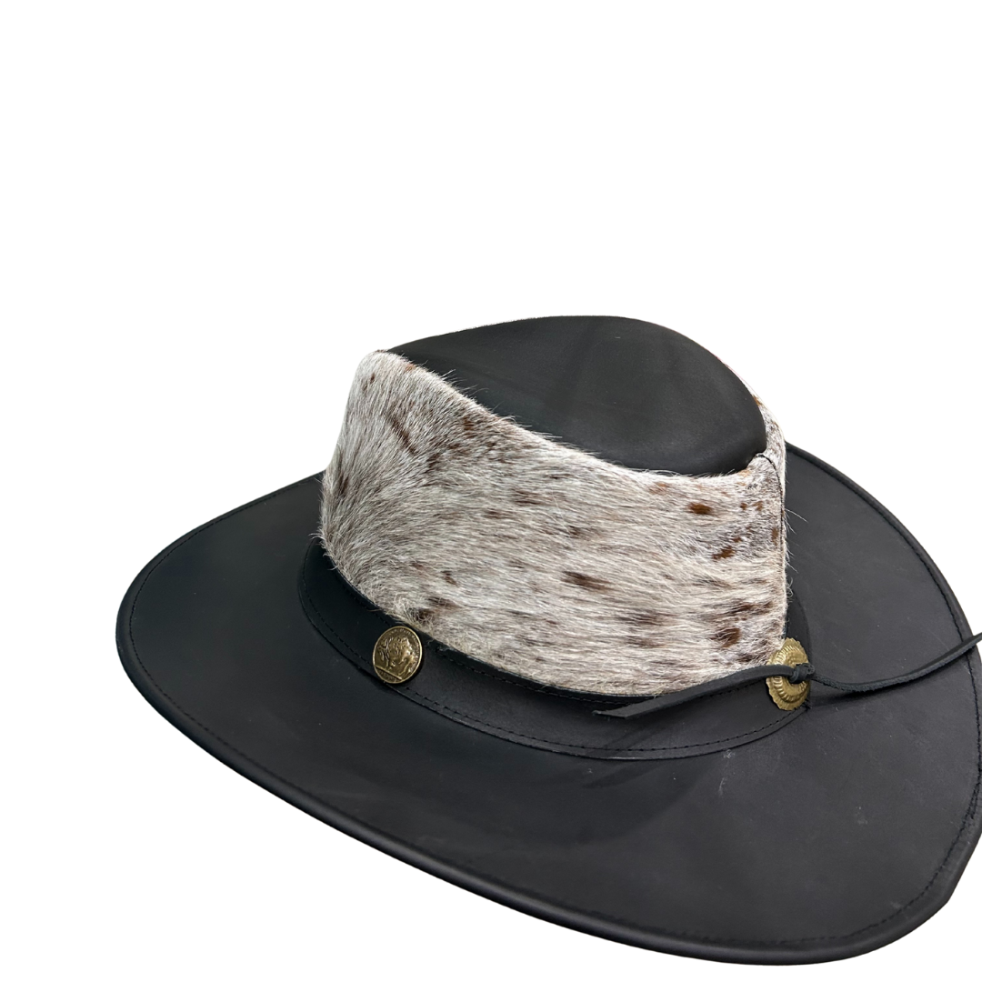 Experience the unique texture and visual depth provided by the genuine Hair-on-Hide crown. The striking black, grey, and white speckles offer a natural, untamed elegance that makes every hat truly unique. This crown captures attention, embodying the untamed spirit of the open range and positioning this hat far beyond the ordinary.