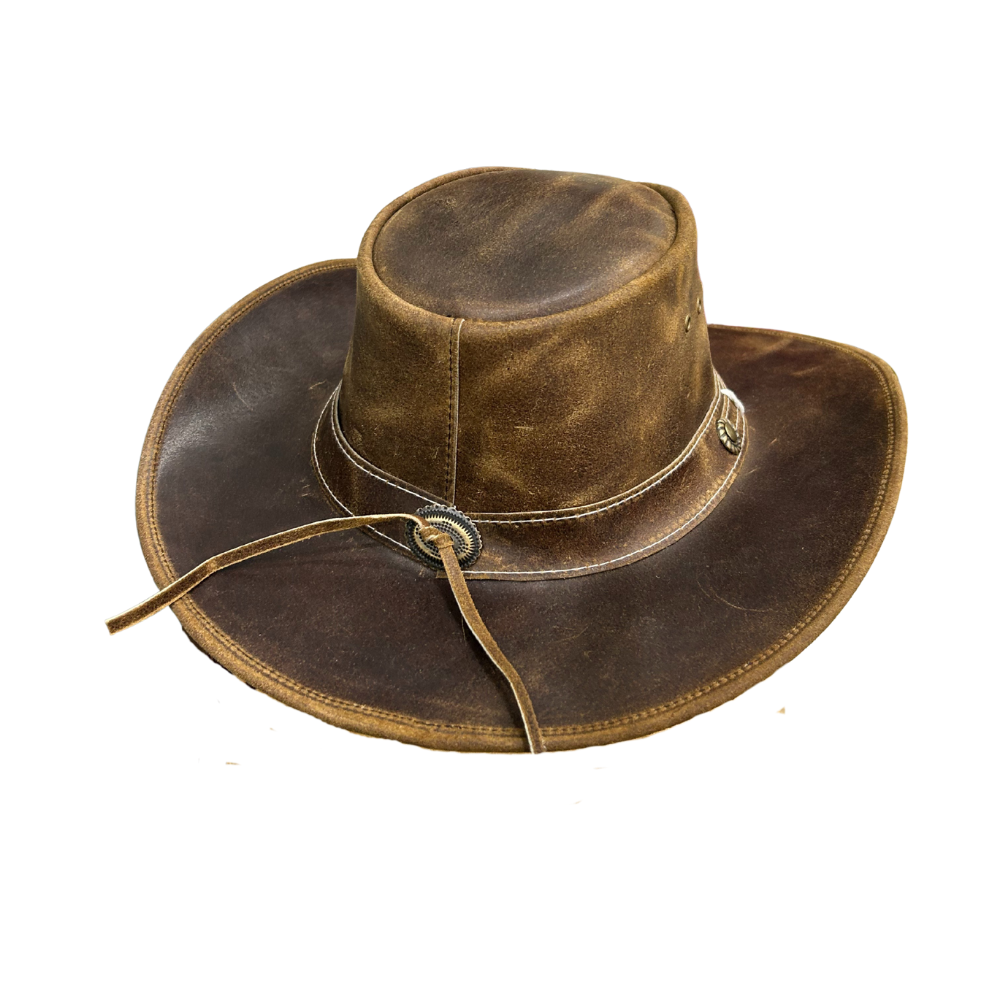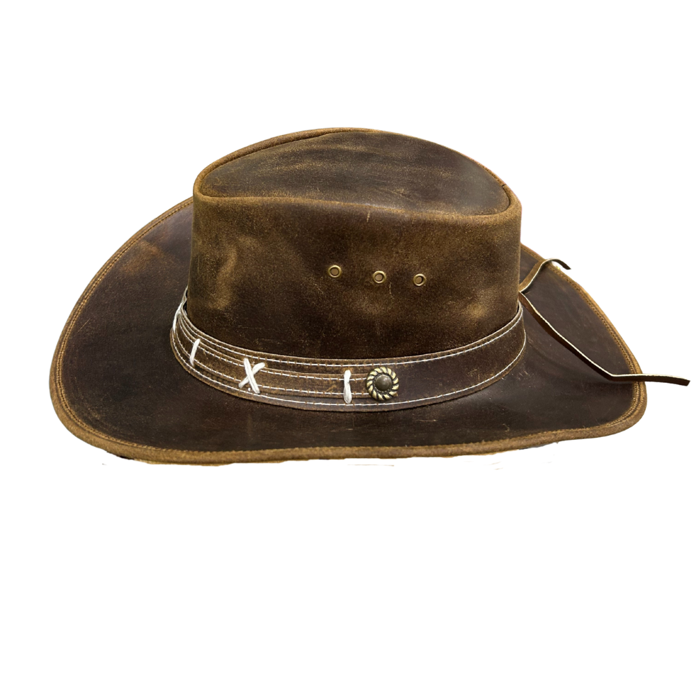 • Hatband: Leather Band with Antique Brass Stud/Grommet Accents
